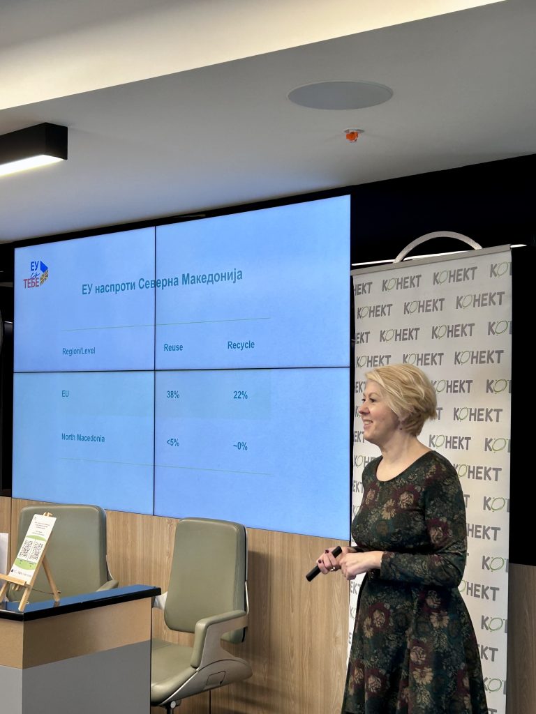 Компаниите во Северна Македонија активно чекорат кон зелена транзиција. На 13 февруари 2026 година, во рамки на проектот „Еко дијалог кон ЕУ: Поттикнување на еколошки промени преку инклузивно застапување на политики“, кофинансиран од Европската Унија, се одржа обука со наслов „Бизнис сектор во зелена транзиција“. На обуката учествуваа 12 претставници од 10 компании, кои се вклучија во дискусија за најновите европски и национални регулативи и практични алатки за примена на ESG принципите и циркуларната економија.